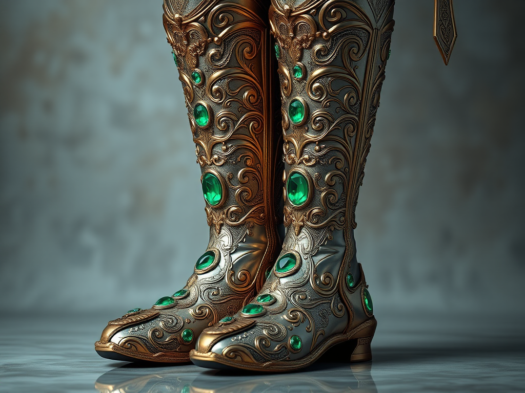 My feet are shod with emeralds so green,