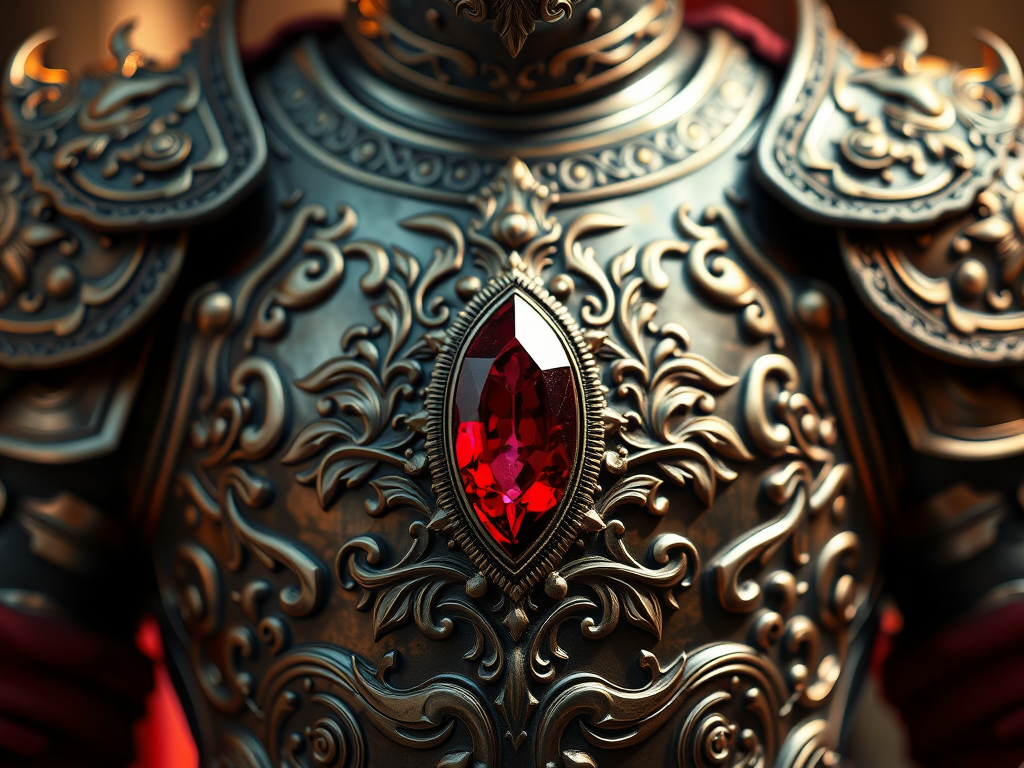 A ruby glows upon my chest, a shield,